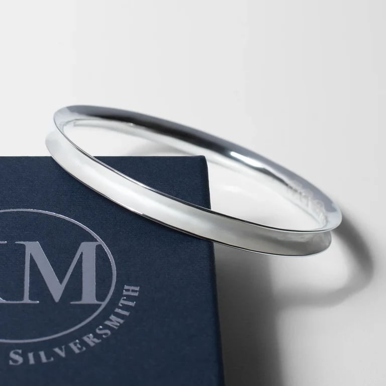 Sterling Silver Anticlastic bangle. This bangle is hallmarked and has the most beautiful mother of pearl like finish to it created by the depletion guilding process. It is extremely comfortable to wear due to the anticlastic shape. This piece of jewellery can be worn happily by itself or stacked with other bangles.